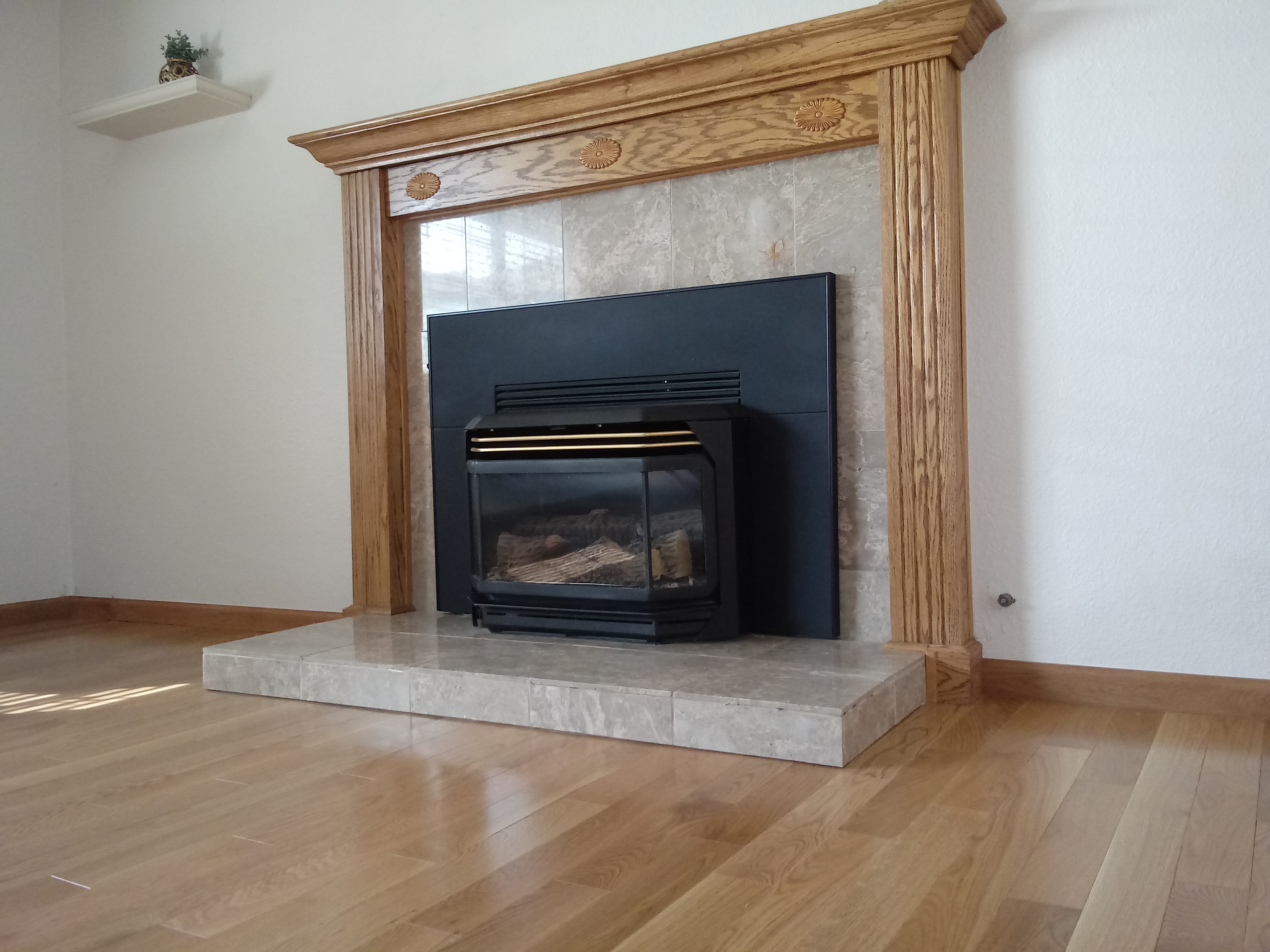 Cutting under the fireplace with a diamond blade, for a clean smooth look as if the fireplace was installed after the floor.